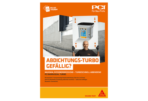 Bauwerksabdichtung und Oberflächenschutz? Klingt nach harter Arbeit. Fühlt sich aber ab jetzt richtig gut und einfach an! Mit den flexiblen Reaktivabdichtungen PCI Barraseal Turbo und PCI Barraseal Turbo 1K bringen wir frischen Wind auf alle erdberührten Bauteile, Anschlüsse und Übergänge sowie Betonbauteile in Tiefgaragen und Parkhäusern.