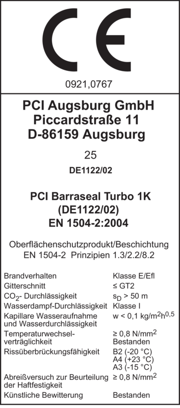 - Als Oberflächen- und Chloridschutz nach EN 1504-2 (Tabelle 5) für Stahlbeton.