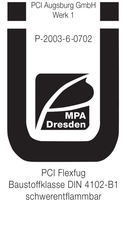 - Allgemeines bauaufsichtliches Prüfzeugnis für Klasse B1 (abrufbar im Internet unter www.pci-augsburg.de).