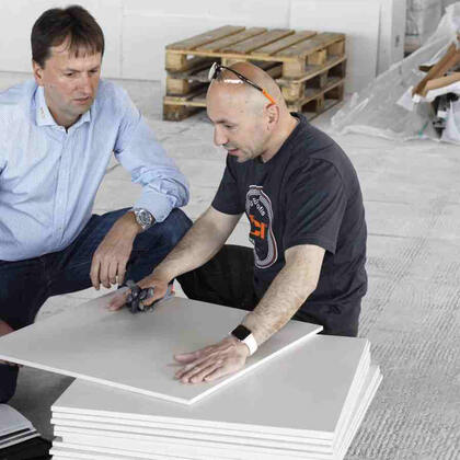 - Für die Verlegung auf angeschliffenen Anhydrit- bzw. Gips-Fließestrichen, Betonfertigteilen, Porenbeton, Heizestrichen, Gipskarton-, Gipsfaserplatten, Trockenestrichen, Gussasphalt (nur im Innenbereich), Dämmstoffplatten, Gipsdielen, Gipsputzen und auf alten Wand- und Bodenfliesen.